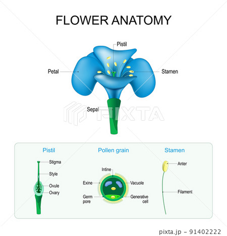 Flower anatomy. Structure of Pistil, Stamen, and Pollen grain