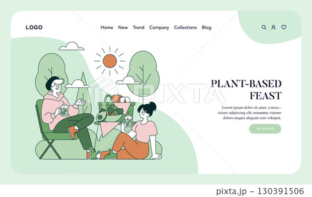 Vector illustration of two people enjoying a picnic with drinks and fruit in a park setting. They appear relaxed and content, surrounded by trees and sunshine, creating a peaceful atmosphere.