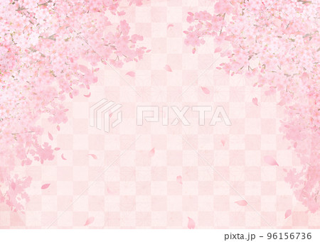 美しい桜ーピンク色ー市松模様ー和紙の壁紙ー豪華絢爛背景素材フレーム