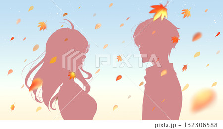 出かける女性 秋 紅葉 シルエット 夕暮れ