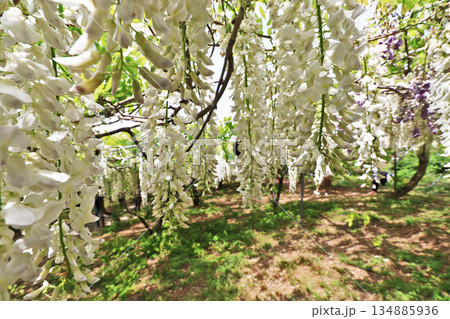 美しい白い花が咲いた藤棚