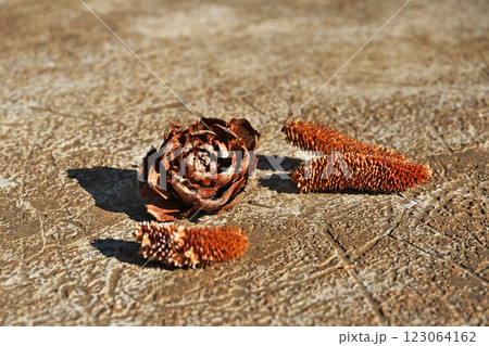 落下したヒマラヤスギの実(シダ―ローズ)(冬、二月)