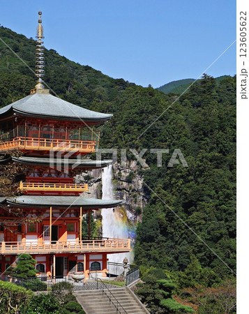 和歌山 那智 三重塔と虹の滝