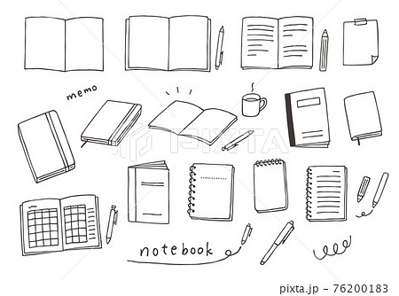 モノクロのスケッチブック・ノートのベクターイラストセット