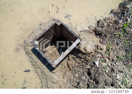 田んぼの排水路の水栓