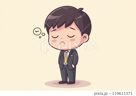 がっかりして寝転ぶスーツを着た男性の可愛いイラスト