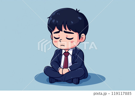 顔を沈め、一人で深く思い悩む男性 心理学系コンテンツイラスト