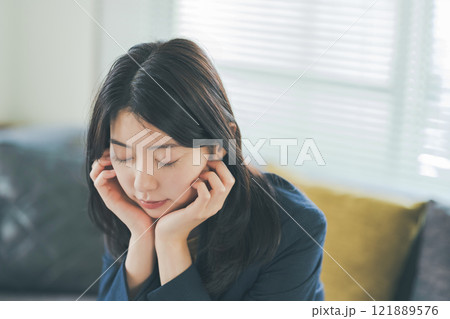 女性、日本人、私服、悩む、困る、考える、どうしよう、失敗、不安、疑問、不合格、不採用、悲しい、寂しい