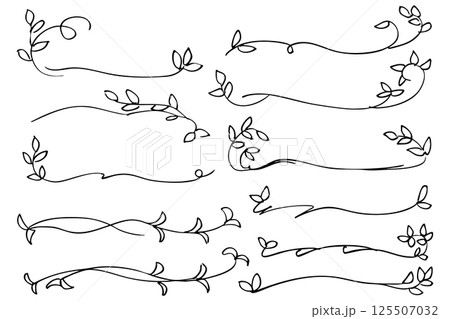 葉っぱとツタの線のイラスト素材 ベクター