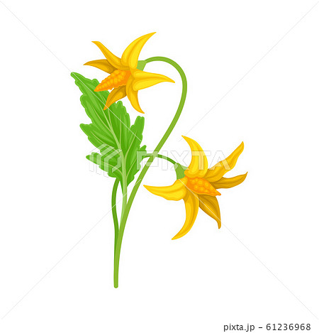 Green Tomato Plant with Yellow Flowers, Tomato Bush Vector Illustration