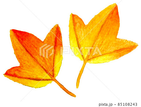 紅葉したトウカエデの葉 手描きの水彩イラスト素材