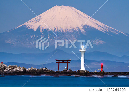 夕暮れの真名瀬海岸より富士山を望む 神奈川県葉山町