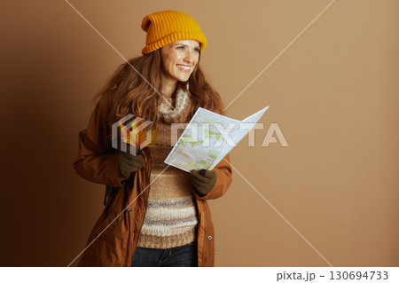 Anticipating Adventure with Map and Autumn Leaf