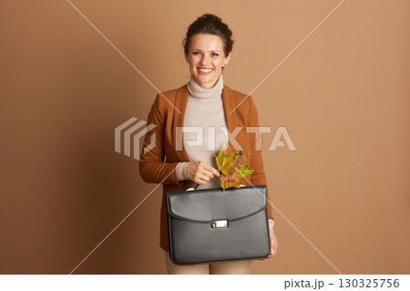 Professional Woman with Briefcase and Autumn Leaves