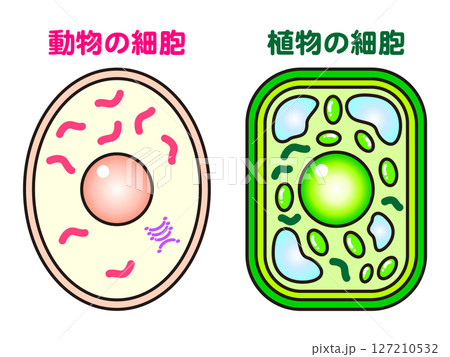 シンプルな植物細胞と動物細胞のイラスト素材