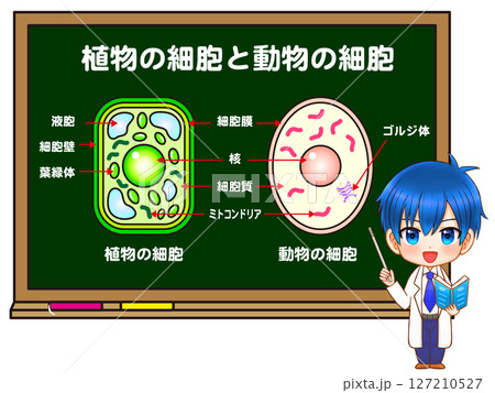 植物細胞と動物細胞の授業をするちびキャラのイラスト素材