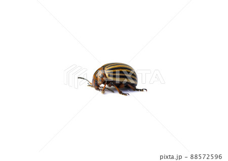 Colorado beetle or ten-striped spearman, potato beetle or bug on white