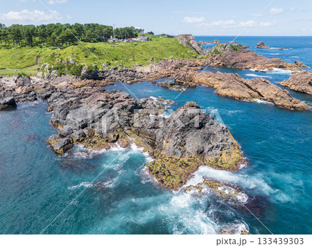 空撮 三陸復興国定公園 種差海岸葦毛崎展望台