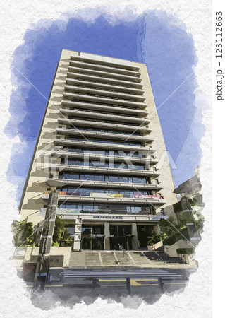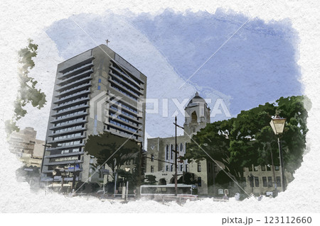 水彩画風 静岡市役所 静岡県静岡市