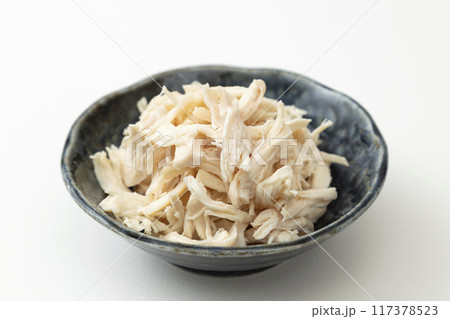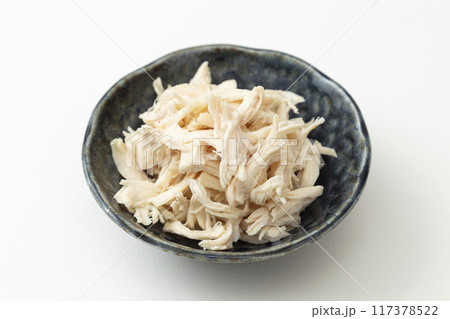 茹でて割いたささみ 白バック