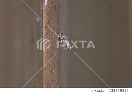 天敵の外来種ハエにより数が激減している、オオミノガの蓑虫の写真