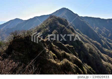 愛鷹山塊の蓬莱岳(蓬莱山)より 早春の鋸岳から位牌岳の稜線