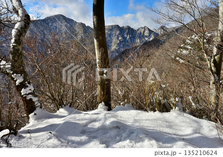 愛鷹山塊の越前岳 鋸岳展望台から雪景色の鋸岳、蓬莱岳(蓬莱山)、呼子岳