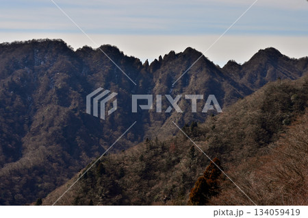 愛鷹山塊の越前岳 鋸岳展望台より望む鋸岳から呼子岳の山稜