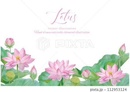 水彩手書きの蓮の花を装飾した葉の背景素材