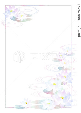 水彩で描いた白背景に蓮の花のイラスト素材 透過背景 コピースペース