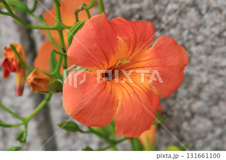 真夏の庭に咲くノウゼンカズラの花 凌霄花
