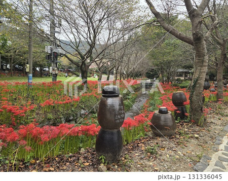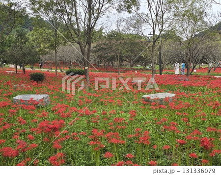 Spider lilies in Gongendo, Satte, Saitama, Japan. October 2, 2020.