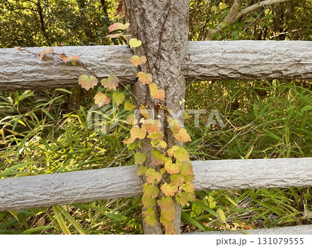 柵に絡まる紅葉したツタ