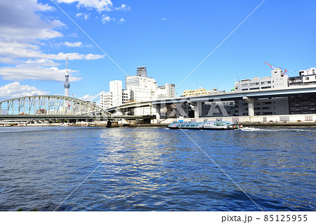 東京都、隅田川の風景(隅田川橋梁、蔵前橋間)