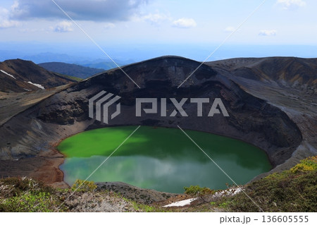 夏の蔵王山の御釜展望台よりお釜を望む