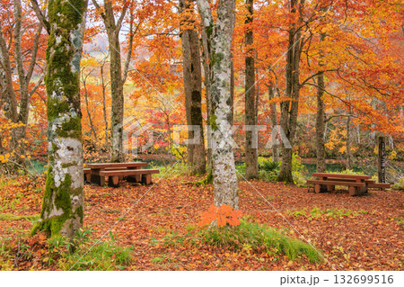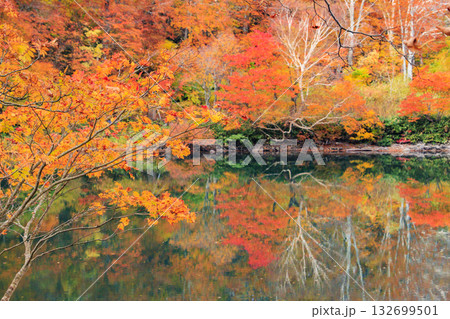 秋のドッコ沼(西蔵王) 紅葉の風景 山形県山形市
