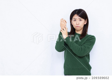 乾燥で腕を搔きむしる40代の女性