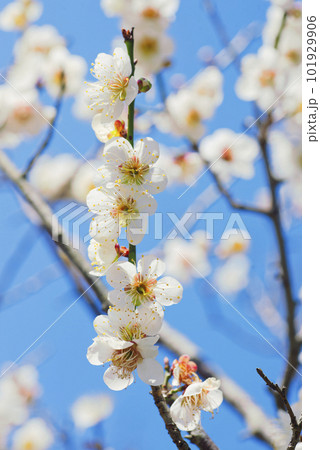 梅、白い梅の花、梅林、花、満開、春の花、植物、春、花びら、自然風景、早春、屋外、ウメ、梅の花、青空、