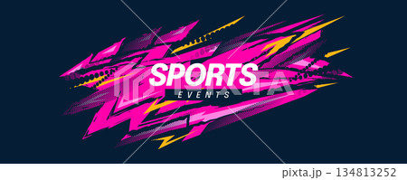 Abstract Sports Background with Grunge Pink Brush Strokes, Energetic Yellow Streaks and Halftone Pattern