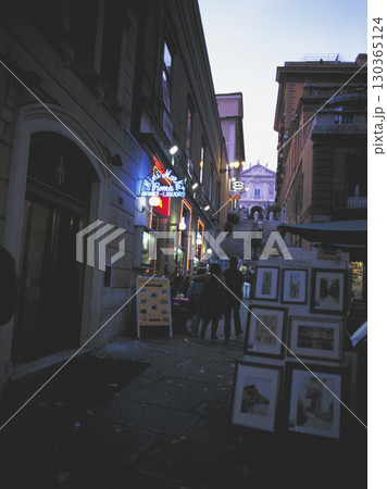 ローマ市内の古い町並み 夕方近く路地裏の風景
