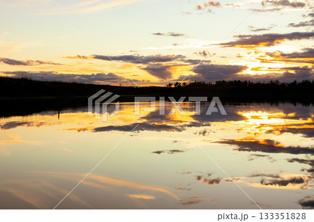 sunset at coast of the lake. Nature landscape