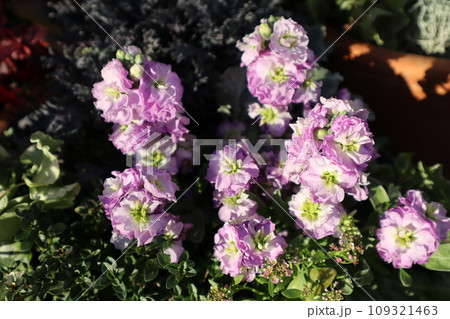 薄紫色のストックの花