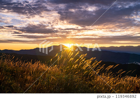 【徳島県/愛媛県】夕日に映えるススキが広がる塩塚高原