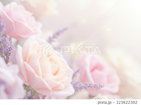柔らかな光に包まれたロマンチックなバラの背景(AI生成画像)