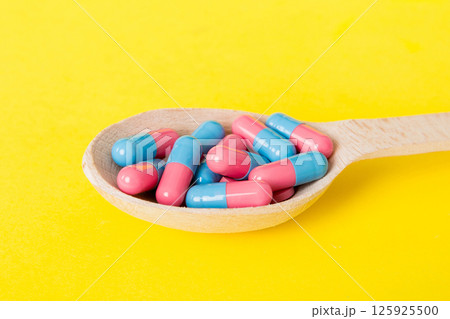 A Variety of Colorful Pills Placed on a Spoon Representing Health and Wellness Benefits