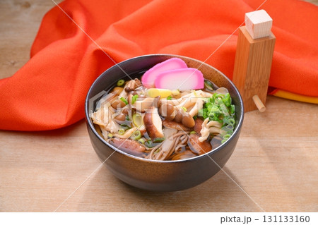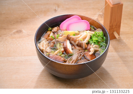 秋のきのこタップリ蕎麦、きのこ蕎麦、椎茸、舞茸、しめじ。
