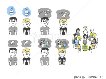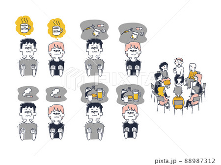 依存症と闘う人々のセット コミカルな手書きの人物 ベクター、線画にカラー