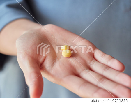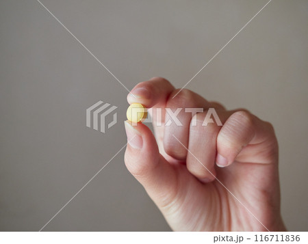 家にいる子供が薬の錠剤を持つ様子