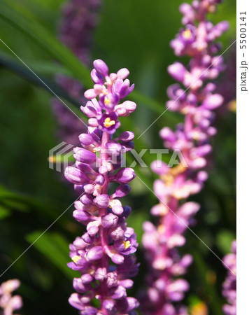 夏の庭に咲くヤブランの紫色の花