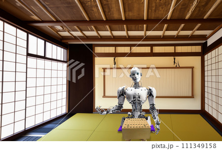 将棋をするロボット 将棋 AI生成画像 AI 人工知能 機械 知能 ゲーム アンドロイド